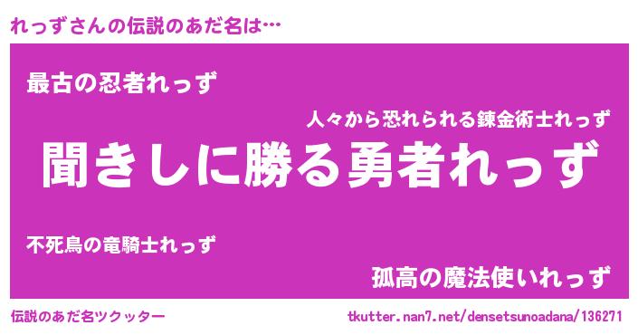 | 意味不明あだ名 | 『永久保存れっず』『れっずフォーエバー』 |