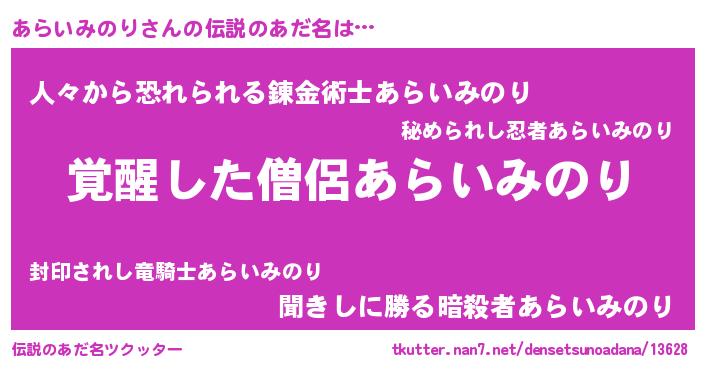 | 意味不明あだ名 | 『自称あらいみのり』 |