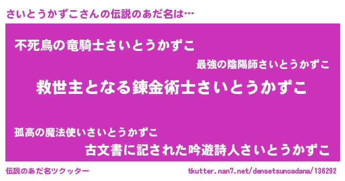 | ヒーロー風カッコイイあだ名 | 『慈愛の使者さいとうかずこ』 |