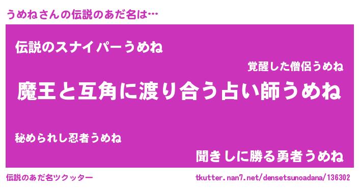 | ヒーロー風カッコイイあだ名 | 『友情の使者うめね』『超時空戦士ウメネ』 |