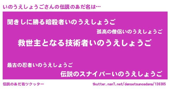 | ヘコむあだ名 | 『いのうえしょうご(笑)』『いのにゅー』 |