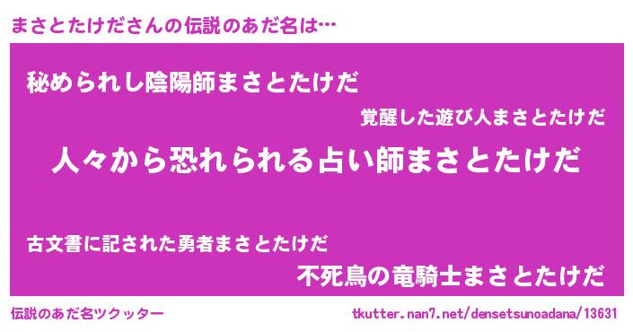 | 意味不明あだ名 | 『住所不定無職まさとたけだ(62歳)』 |