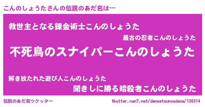 | 意味不明あだ名 | 『もやし科こんのしょうた属』 |