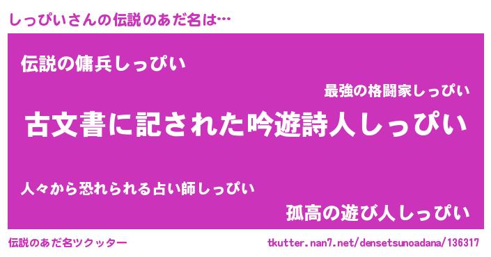 | 意味不明あだ名 | 『永久保存しっぴい』『ペロリンしっぴい』 |