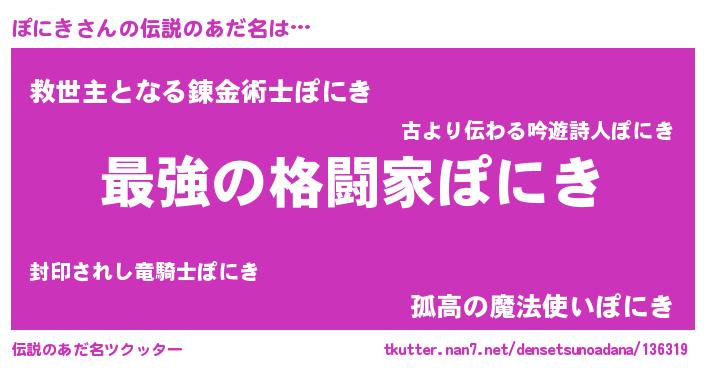 | 胡散臭い通販商品みたいなあだ名 | 『あなたにだけ特別に提供する100年もののヴィンテージワイン…その名も「ぽにき」』 |