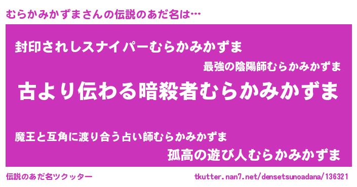 | ヘコむあだ名 | 『むらかみかずま(笑)』『むらっふぃ~』 |