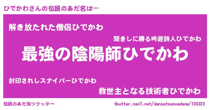 | 意味不明あだ名 | 『ひでかわフォーエバー』『自称ひでかわ』 |