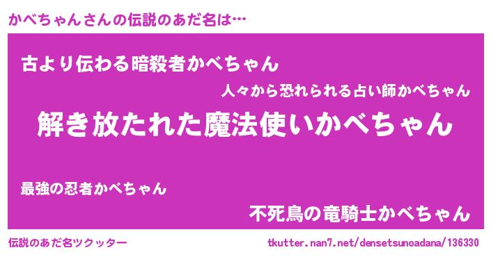 | ヒーロー風カッコイイあだ名 | 『魔戒騎士カベ』『ネオカベチャン』 |