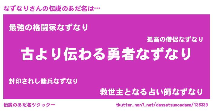 | ヘコむあだ名 | 『なずなり(震え声)』『酢こんぶ』 |