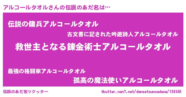 | 意味不明あだ名 | 『住所不定無職アルコールタオル(81歳)』 |