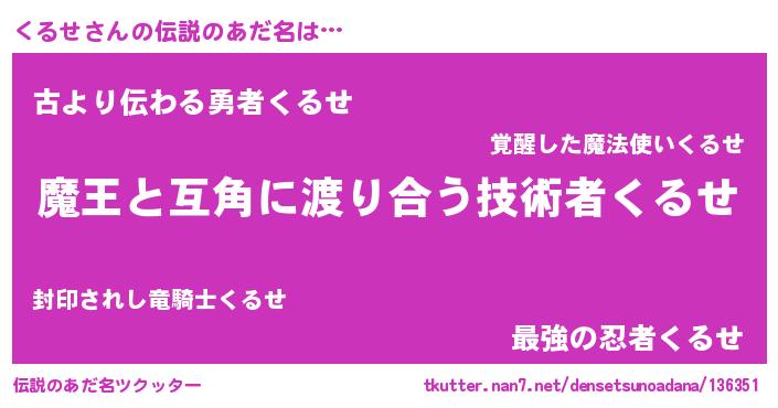 | 意味不明あだ名 | 『住所不定無職くるせ(11歳)』『自称くるせ』 |