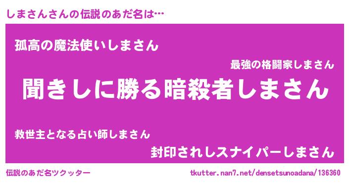 | 胡散臭い通販商品みたいなあだ名 | 『絶対に幸福をもたらす健康食品…その名も「しまさん」』 |