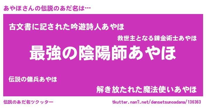 | 女子向けラノベタイトル風あだ名 | 『あやほの婚約者』『あやほアンティーク』 |
