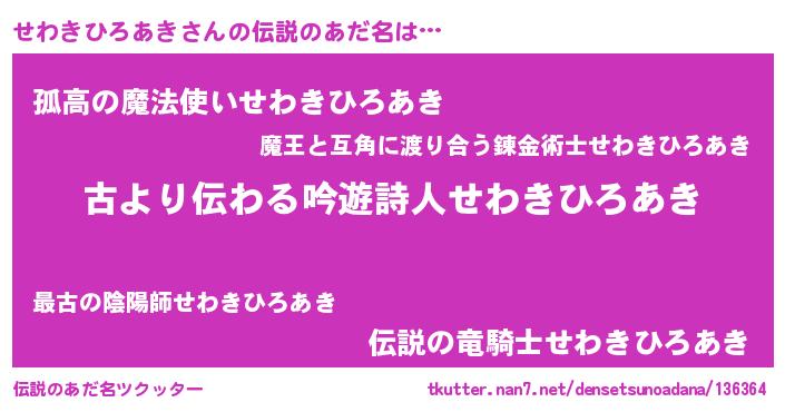 | ヘコむあだ名 | 『せわきひろあき(笑)』『せわを』 |
