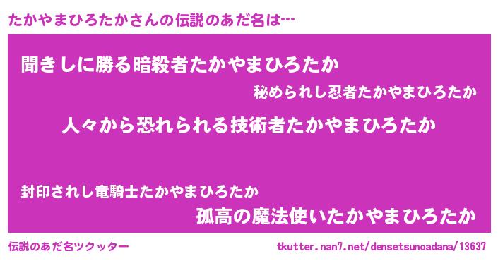 | ヘコむあだ名 | 『たかやまひろたか(小並感)』『たかお』 |