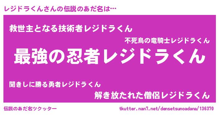 | ヒーロー風カッコイイあだ名 | 『ウルトラレジドラくんマン』 |