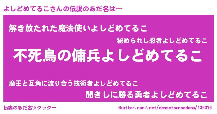 | 意味不明あだ名 | 『住所不定無職よしどめてるこ(59歳)』 |