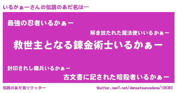 | ヒーロー風カッコイイあだ名 | 『天空の使者いるかぁー』『仮面イルダー』 |