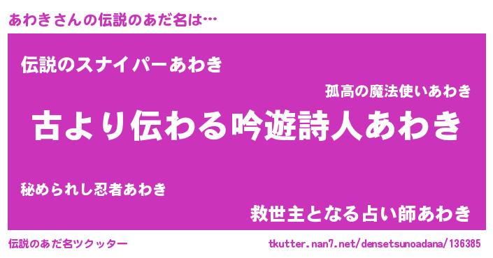 | ヒーロー風カッコイイあだ名 | 『ネオアワキ』『スーパーアワキ』 |