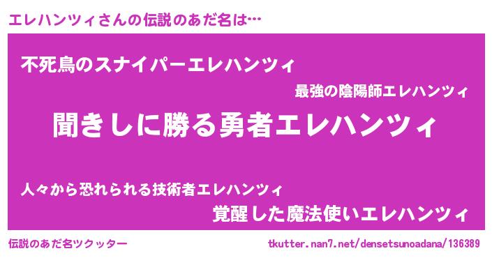 | 意味不明あだ名 | 『住所不定無職エレハンツィ(95歳)』 |