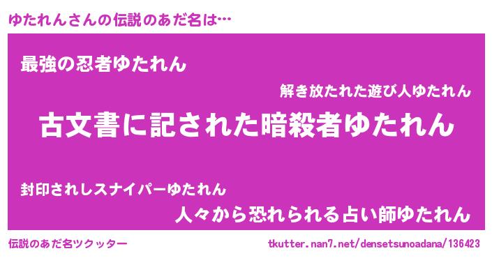 | ヘコむあだ名 | 『ゆたれん(爆)』『レバニラ』 |