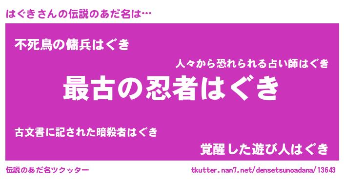 | ヘコむあだ名 | 『豆乳』『はぐにゅー』『はぐぷりん』 |