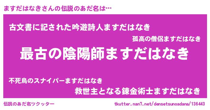 | 意味不明あだ名 | 『住所不定無職ますだはなき(81歳)』 |