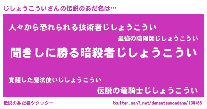 | 胡散臭い通販商品みたいなあだ名 | 『絶対に幸福をもたらす健康食品…その名も「じしょうこうい」』 |