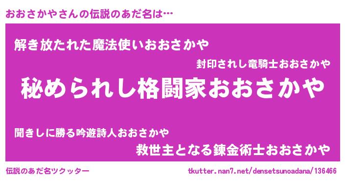 | 意味不明あだ名 | 『おおさかやフォーエバー』 |