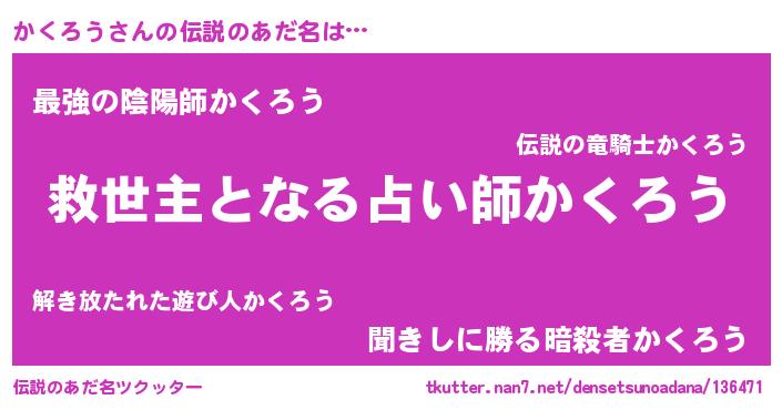 | 意味不明あだ名 | 『自称かくろう』『つくし科かくろう属』 |