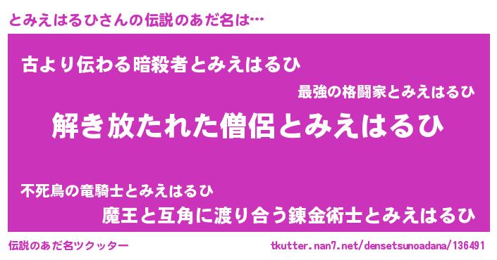| ヒーロー風カッコイイあだ名 | 『幻影騎士トミ』『ネオトミエハルヒ』 |