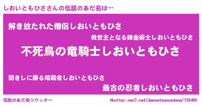 | 男性向けラノベタイトル風あだ名 | 『転生したらしおいともひさだった件』 |