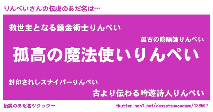 | 胡散臭い通販商品みたいなあだ名 | 『信頼と実績のサプリメント…その名も「りんペい」』 |