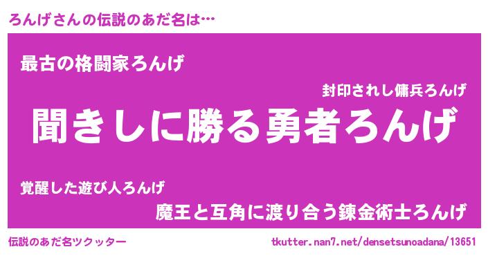 | ヒーロー風カッコイイあだ名 | 『ネオロンゲ』『ウルトラろんげマン』 |