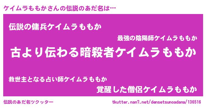 | ヘコむあだ名 | 『ケイムラももか(笑)』『ケイにゅー』 |
