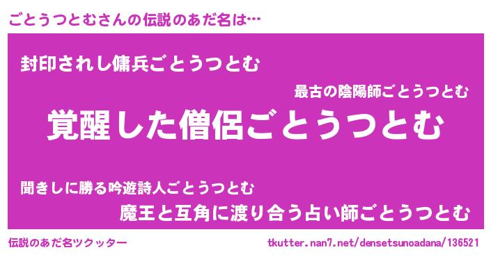 | ポケモン風あだ名 | 『ヒゴトウツトム』『ゴトゴンZ』 |