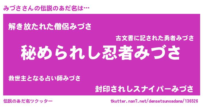 | 意味不明あだ名 | 『みづさフォーエバー』『自称みづさ』 |