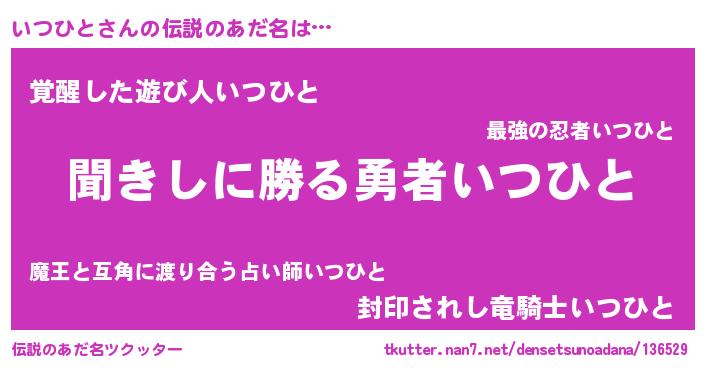 | ヒーロー風カッコイイあだ名 | 『ネオイツヒト』『仮面イツダー』 |