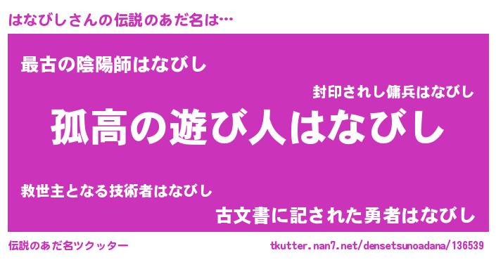 | 意味不明あだ名 | 『とにかく怪しいはなびし』 |