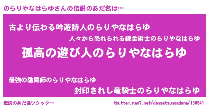 | 胡散臭い通販商品みたいなあだ名 | 『信頼と実績のペンダント…その名も「のらりやなはらゆ」』 |