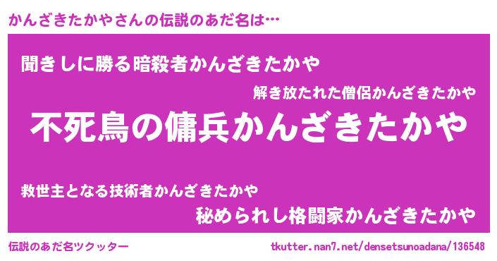 | ヘコむあだ名 | 『かんもー』『かんざきたかや(苦笑)』 |