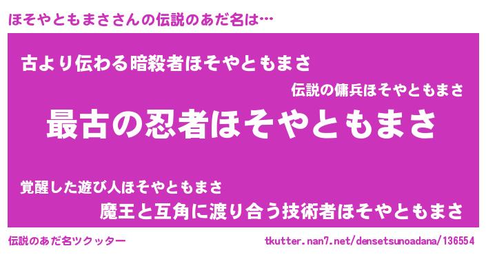 | 意味不明あだ名 | 『ほそやともまさフォーエバー』 |