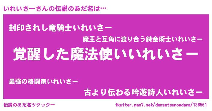 | 胡散臭い通販商品みたいなあだ名 | 『あなたにだけ特別に提供する100年もののヴィンテージワイン…その名も「いれいさー」』 |