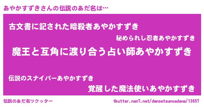 | 意味不明あだ名 | 『自称あやかすずき』 |