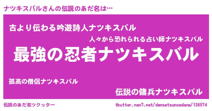 | 欧米人風あだ名 | 『ナツキスバルクリステル』 |