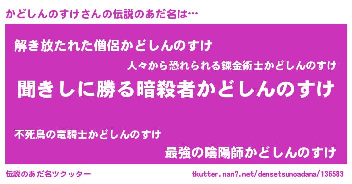 | 意味不明あだ名 | 『住所不定無職かどしんのすけ(62歳)』 |