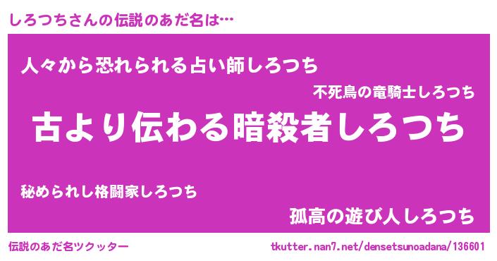 | 男性向けラノベタイトル風あだ名 | 『誰もが恐れるあのしろつちが、ぼくの専属メイドになるようです。』 |