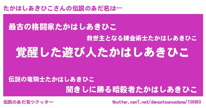 | 意味不明あだ名 | 『とにかく怪しいたかはしあきひこ』 |