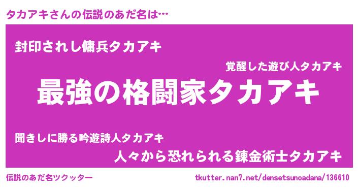 | ファンタジー風あだ名 | 『エターナルタカアキー』『ゼタカトゥ』 |