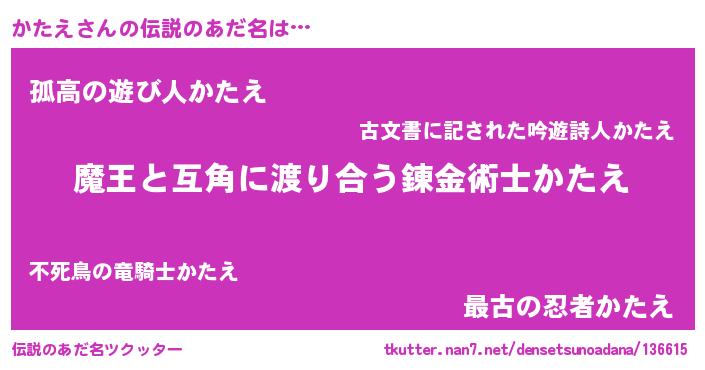 | ヒーロー風カッコイイあだ名 | 『仮面カタダー』『友情の使者かたえ』 |